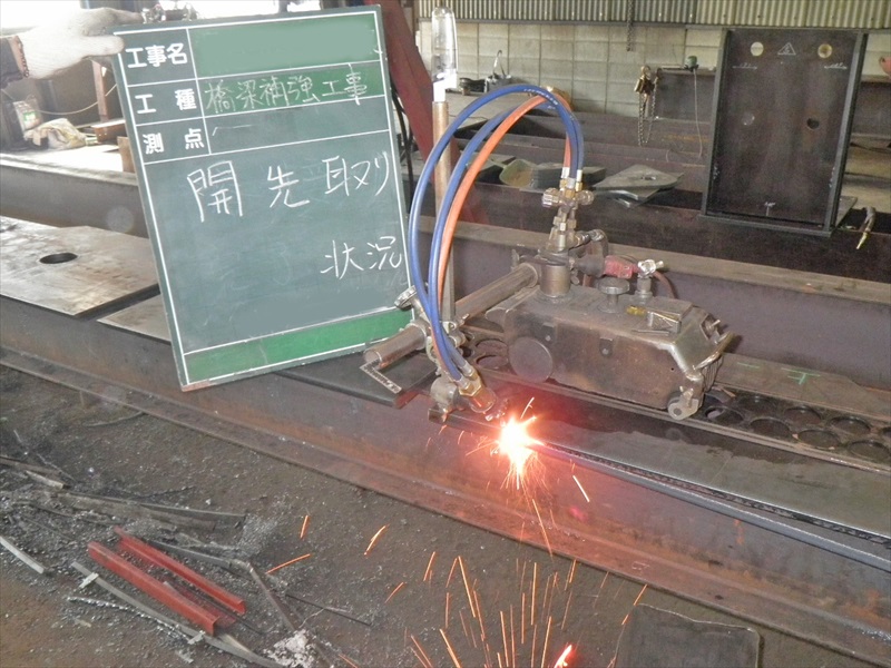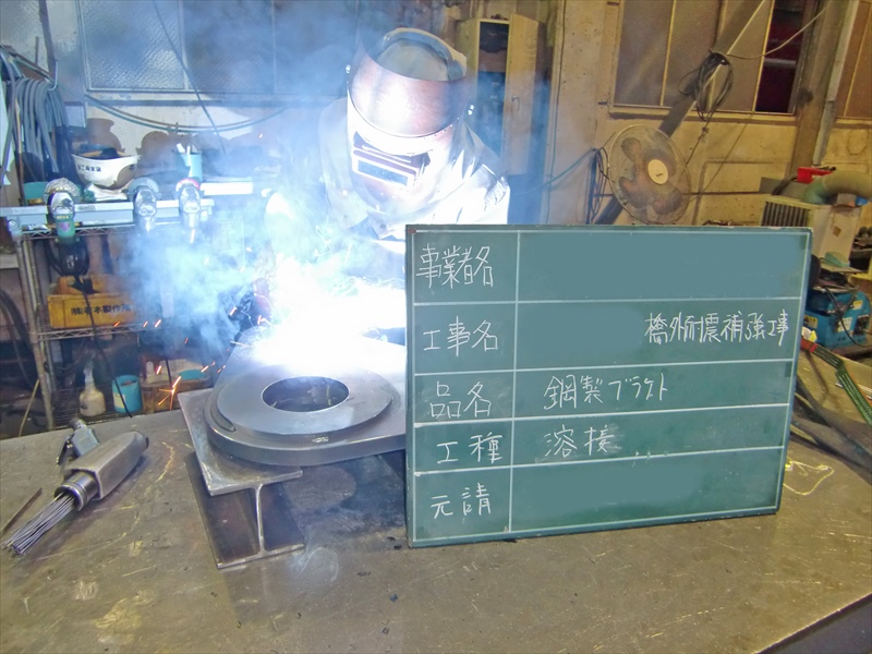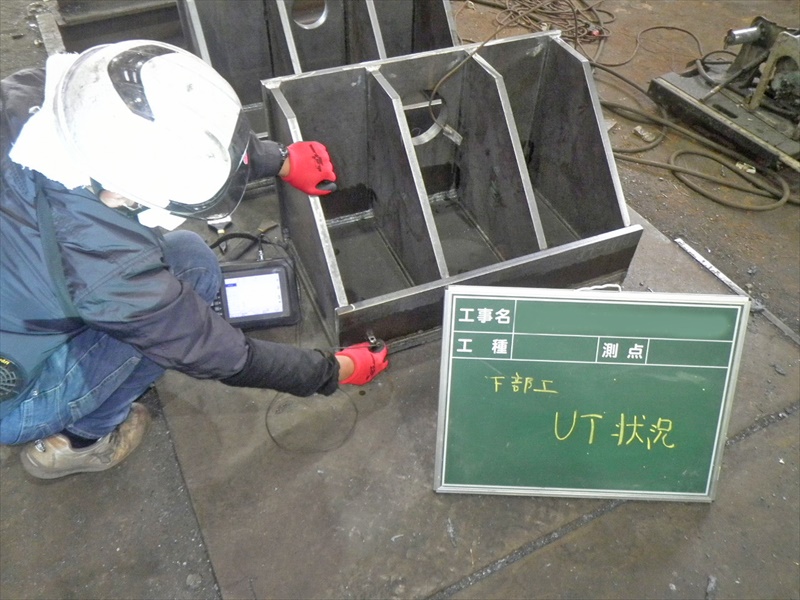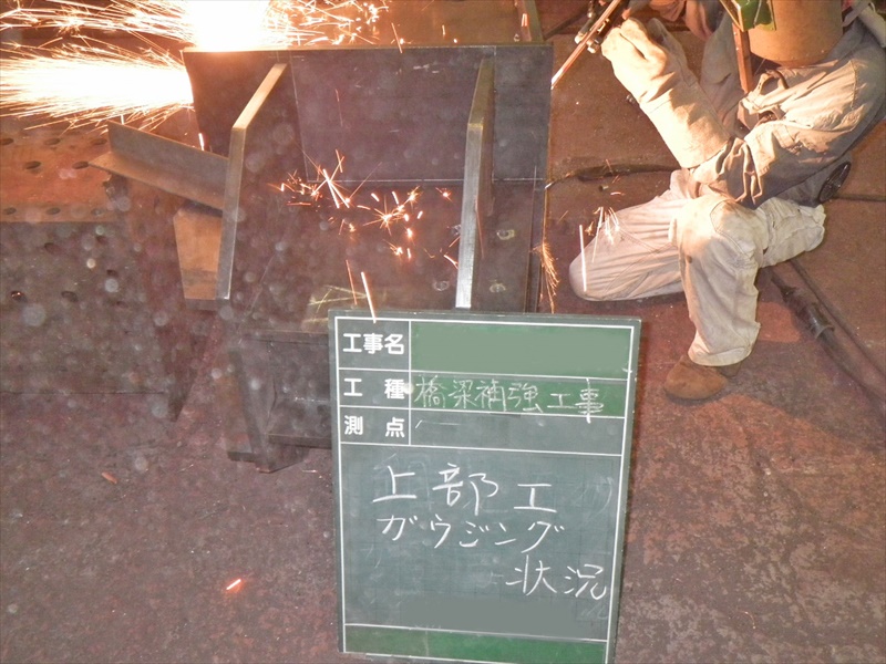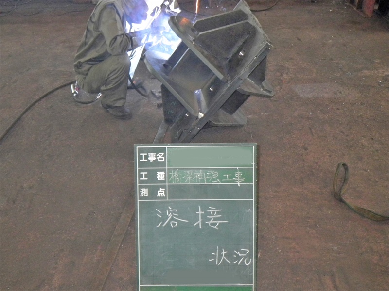 鋼製ブラケット製作(開先加工/裏はつりガウジング/溶接/超音波探傷試験)